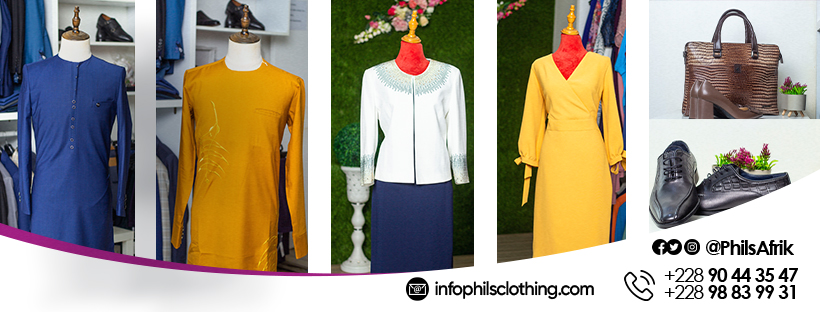 PHILS WEAR est une boutique de mode polyvalente spécialisée dans l'habillement pour toute la famille à Lomé. Offrant une gamme complète de vêtements et accessoires de qualité, notre boutique se distingue par ses collections élégantes de mode féminine pour dames de tous âges, sa garde-robe complète pour hommes avec style et distinction, ses vêtements confortables et stylés pour enfants de 0 à 15 ans, ainsi qu'une large sélection d'accessoires de mode pour compléter votre look. Spécialisés dans le prêt-à-porter avec des collections tendance et intemporelles, nous proposons également un service de conseil en style personnalisé pour vous aider à trouver votre style unique. Chez PHILS WEAR, nous nous engageons à offrir des solutions vestimentaires pour répondre à tous vos besoins d'habillement avec élégance, qualité et un accompagnement professionnel.