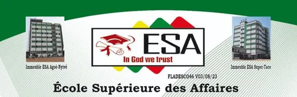 L'École Supérieure des Affaires (ESA) est un établissement d'enseignement supérieur de référence au Togo, offrant des formations de qualité du BTS au Doctorat. Située à Agoè Gbonvé, l'ESA se distingue par son offre académique diversifiée dans les domaines tertiaire et technologique. Notre engagement est de former des professionnels compétents et opérationnels, capables de répondre aux exigences du marché du travail national et international.